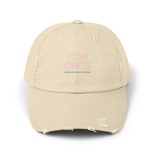 Distressed Baseball Cap — "FOR ONCE" Retro Embroidered Dad Hat
