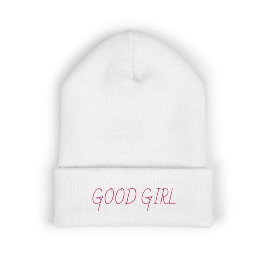 Embroidered 'GOOD GIRL' Cuffed Beanie — Cozy Knit Winter Hat